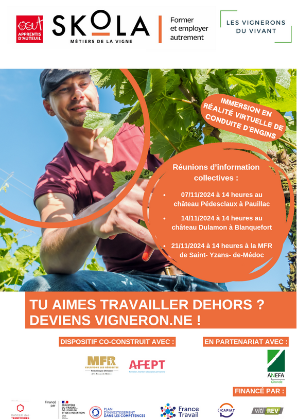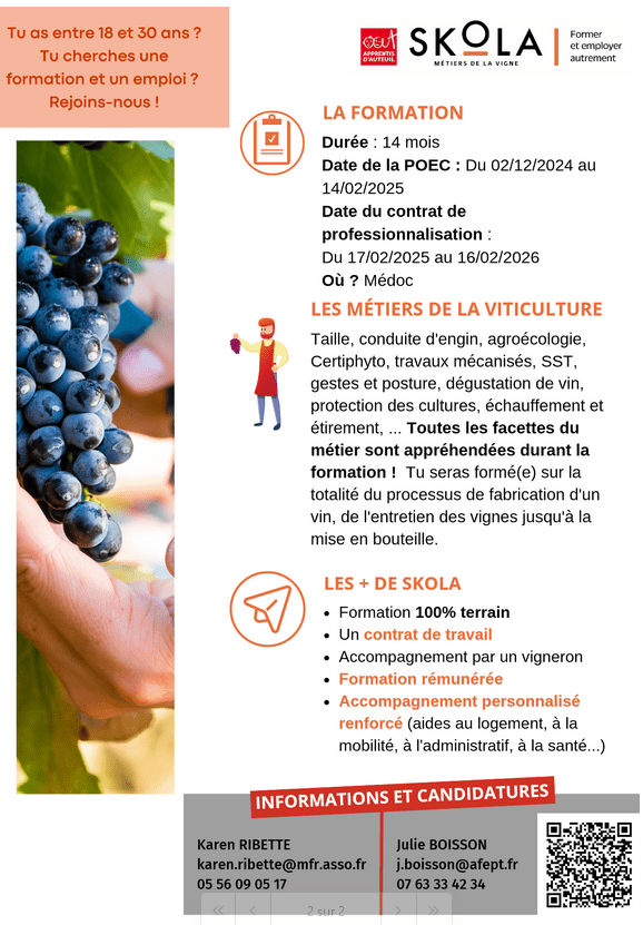 du Bac Pro CGEVV (conduite et gestion d’une entreprise viticole et vinicole) en formation initiale, en contrat d’apprentissage ou en contrat de professionnalisation (1ere et terminale)